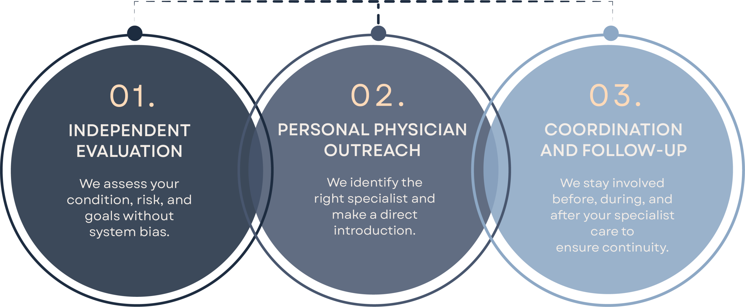 Our physicians personally identify, contact, and coordinate care with leading specialists across institutions nationwide.